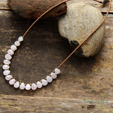 Graceful and grounding, the Rose Serenity Teardrop Choker features a delicately handcrafted strand of soft rose quartz beads anchored by a minimalist teardrop charm. Known as the stone of love and emotional healing, rose quartz invites peace and presence into your everyday wear. Wear it as a symbol of self-love, balance, and inner calm—layered or solo.