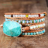 Layered with intention, the Fivefold Energy Wrap is a bold statement in grounded beauty. Handmade with natural amazonite, quartz, and crystal beads, this 5-strand wrap bracelet radiates balance, calm, and confidence. Designed for the free-spirited and style-conscious, it’s a piece that channels energy while elevating your look.