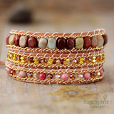 Let natural energy guide your rhythm with the Stoneflow Wrap Bracelet. Handcrafted with imperial jasper, rhodonite, and crystal, this 3-strand design flows with intention—layered with texture, meaning, and quiet strength. Without a central motif, this minimalist version lets the stones speak for themselves, making it the perfect everyday piece for grounding and effortless style.