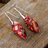 Rooted in warmth and grace, the Emberleaf Drop Earrings are crafted by hand using natural Red Jasper stones. Their delicate leaf silhouette and elegant gold or silver-plated hooks add a touch of earthy sophistication to any look. Believed to inspire grounding and vitality, these earrings are more than an accessory—they're a soulful expression of inner strength and beauty.